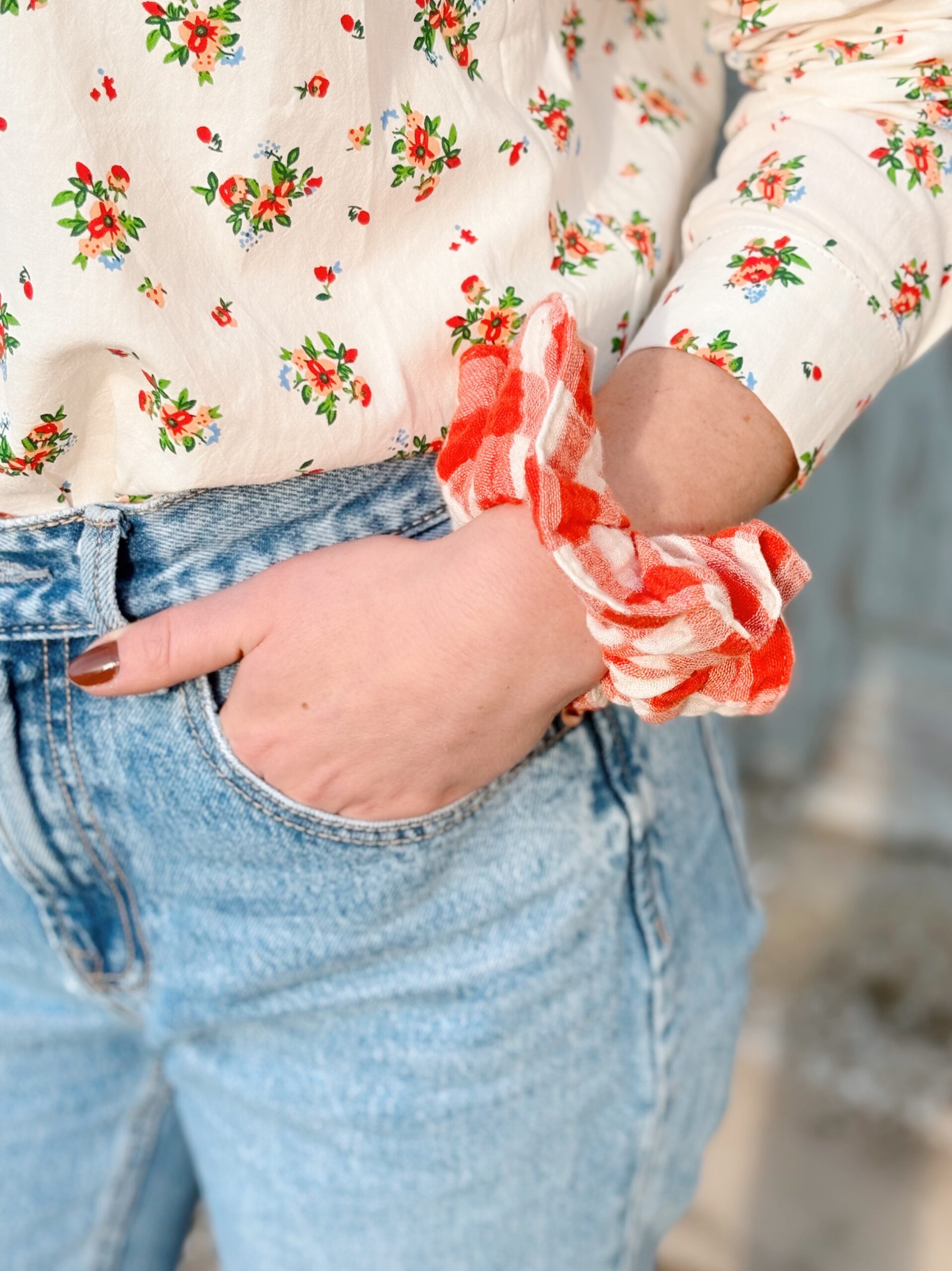 Plaukų gumytė „CHOUCHOU VICHY ECRU TOMATO”